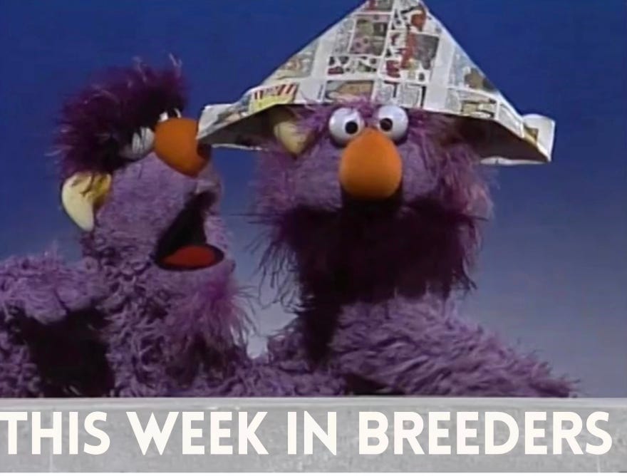 This Week In Breeders is a podcast! And you can listen to it wherever you like to listen to podcasts (Apple; Spotify; everywhere that groups of men get together and wordlessly grunt their non-feelings at each other).